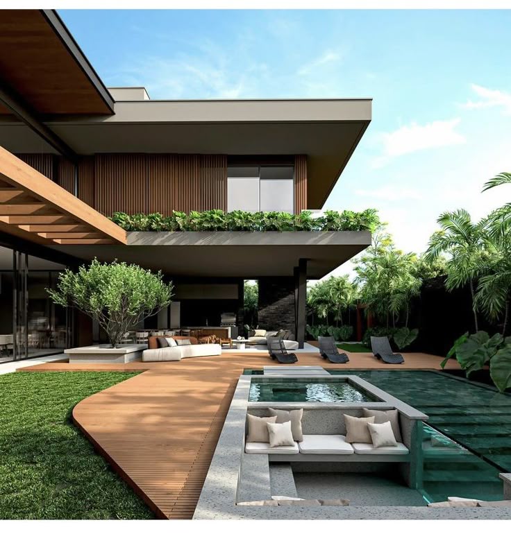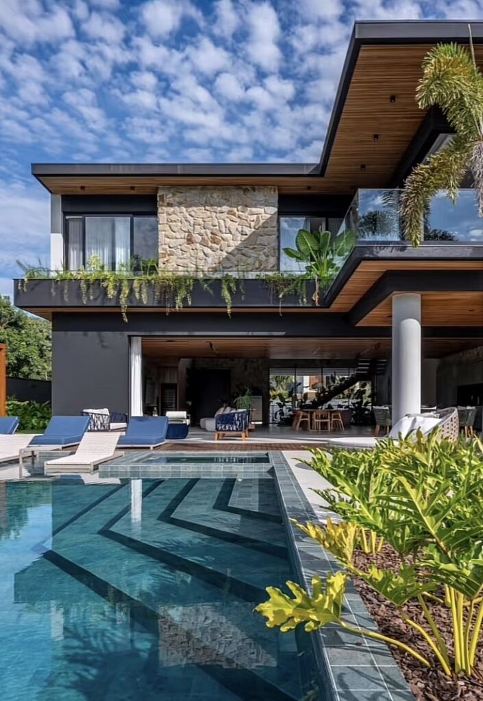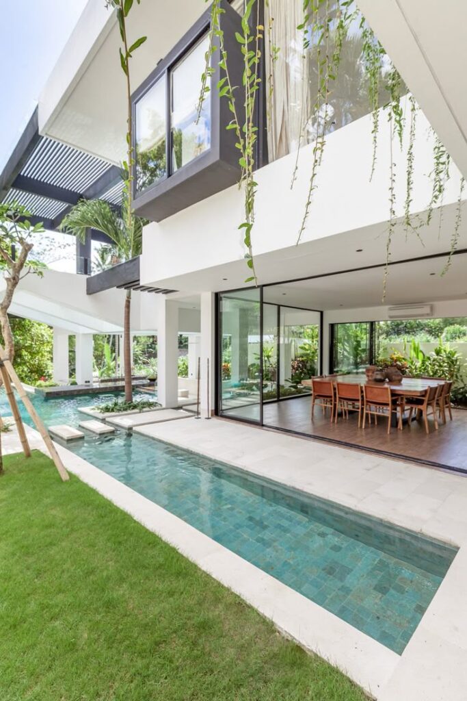 - Có thể tích hợp các yếu tố như hồ bơi, sân vườn, khu BBQ, và các khu vực thư giãn như ghế nằm, bàn trà ngoài trời.