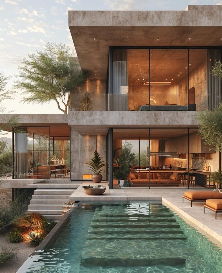 - Thiết kế có thể theo phong cách hiện đại hoặc truyền thống, với các cửa kính lớn để tối ưu hóa ánh sáng tự nhiên và kết nối không gian trong nhà với thiên nhiên bên ngoài.